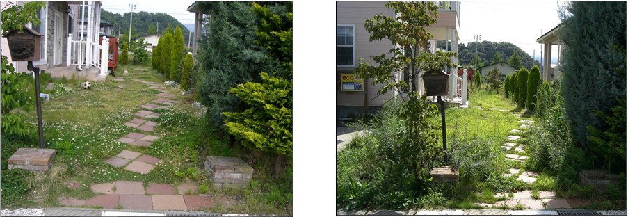 春に撮影した庭と、施工直前8月中旬過ぎに撮影した同じ庭です。(お客様より了解済)