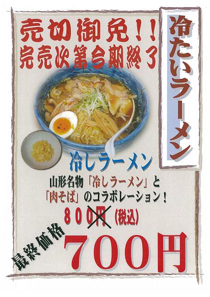 【冷たいラーメンさよならフェア】を開催いたします。