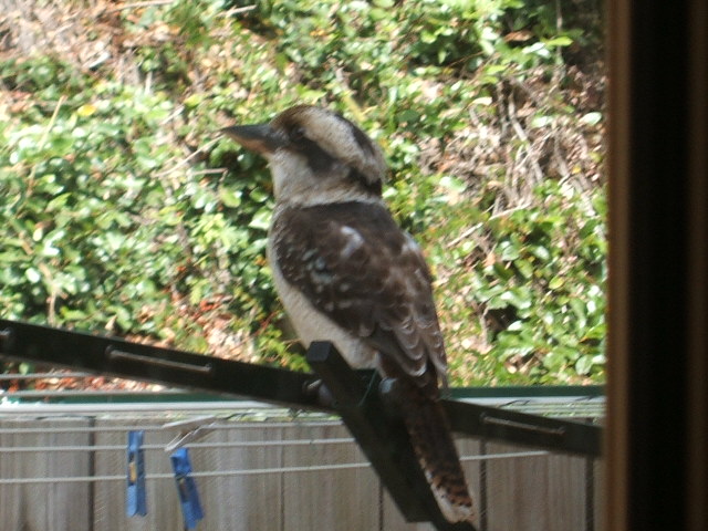 が、裏庭の洗濯物干しに止まってました。