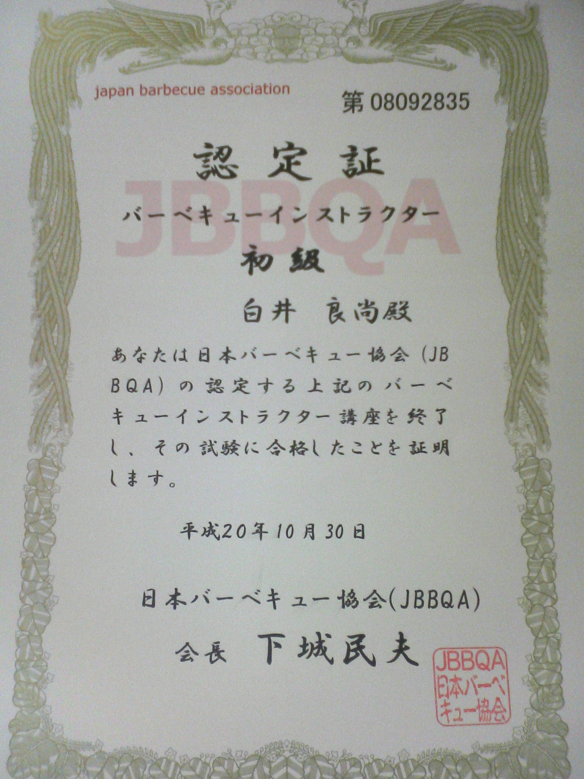 晴れて、バーベキュー初級インストラクターとなれました☆