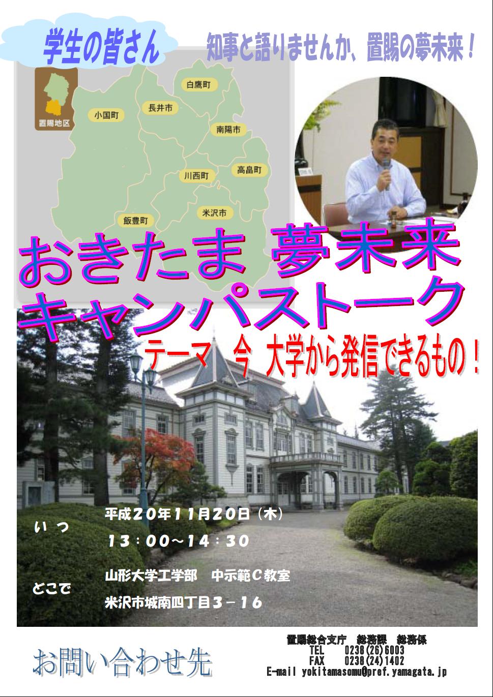 昨日(11/20)に山形大学工学部で『おきたま 夢未来キャンパストーク』がありました。