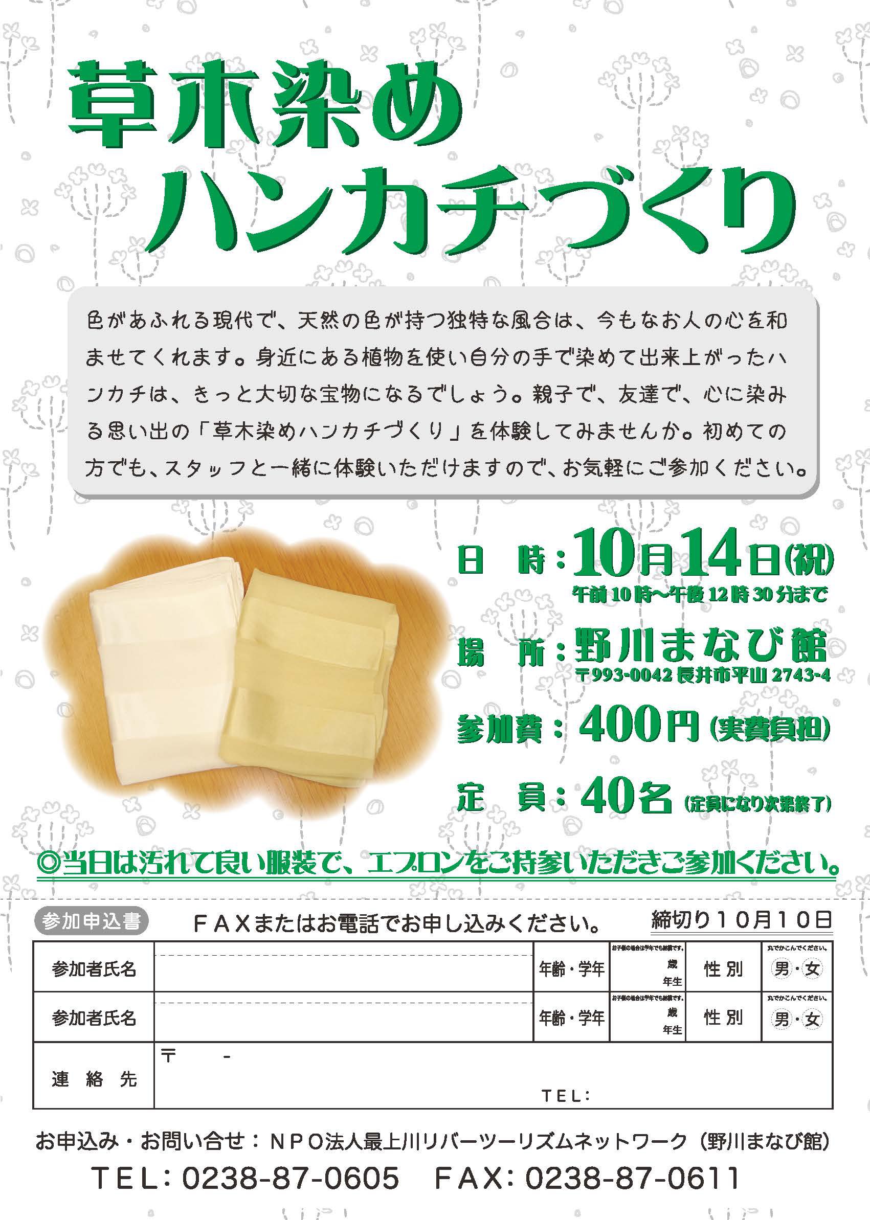 ▼草木染めのハンカチづくりの募集が締切間近です。2013/10/09 15:55 (C) 最上川リバツーネット