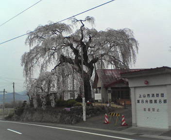 上山市の桜の名所「権現堂のしだれ桜」です。