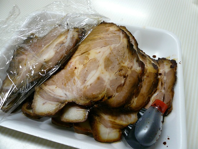 大きくて、ぶ厚い焼豚はオリジナルのたれで焼かれ、冷たくても、とてもやわらかい♪おいしかった〜。