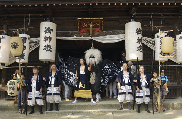 写真はもちろん新しい獅子が拝殿を舞っているところです。フサフサの毛と光沢感のある頭が新鮮さを出しています。