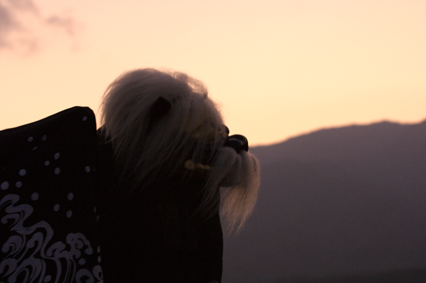 夕映えの葉山をバックに獅子のシルエットです。