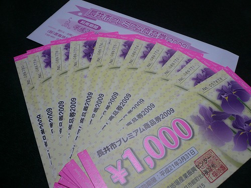 今日からYahoo検索第1位という快挙を成し遂げている長井市プレミアム商品券2009が販売されました。消費喚起を目的としたもので、総額1億1千万円という想像もつかない金額です。
