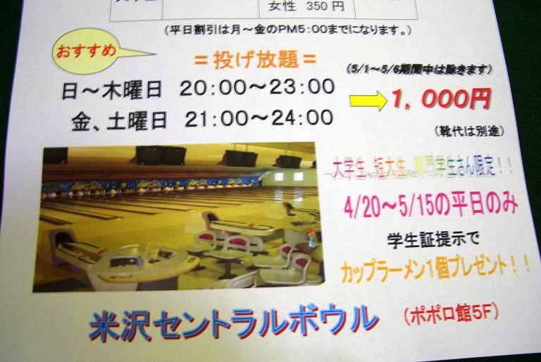 ▼新生活応援★大学生・短大生・専門学生さん限定!!2009/04/19 16:16 (C) *米沢セントラルボウル*
