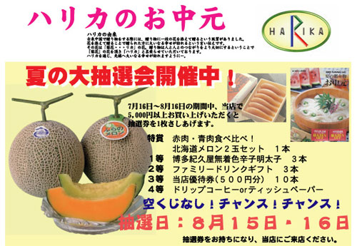 ▼夏の大抽選会開催中! 〜ハリカのお中元〜2009/07/19 17:49 (C) ハリカ長井