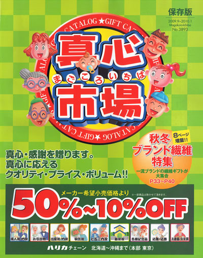 日頃より当店をご利用いただきありがとうございます。ハリカの秋冬特選商品満載の『真心市場新カタログ』できました。真心と感謝を贈るクオリティとプライス、ボリュームです。今回は秋冬ブランド繊維特集が組まれ、繊維商品がさらに充実しています。