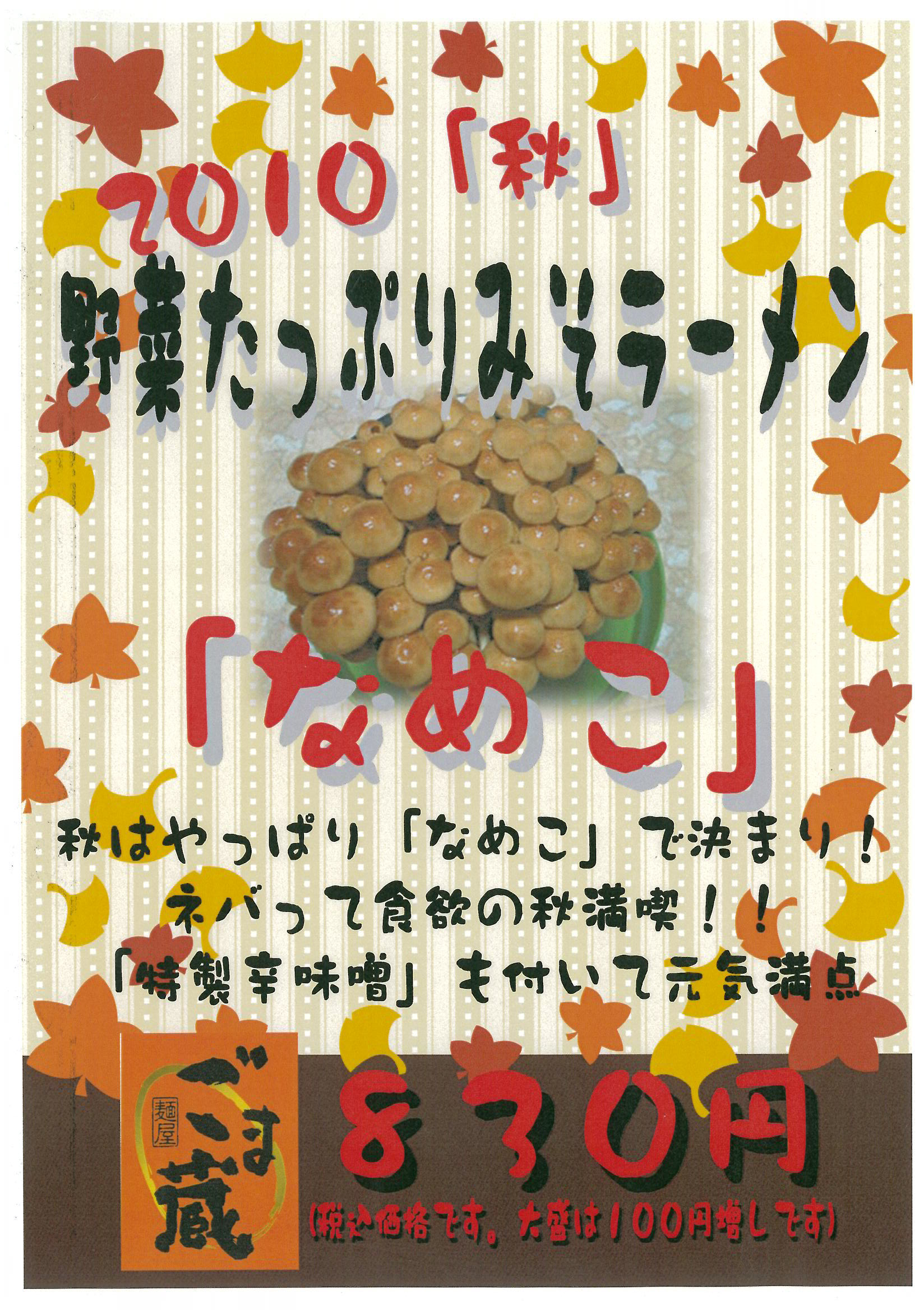 「なめこ」の風味に「特製辛味噌」、