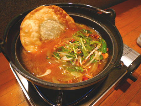 今日はタス9階の井井殿で食べてみた。鍋の具材は今日はたまねぎとにんじん、えのき(オリジナルはキャベツ・きくらげ・にんじん・たけのこ・しめじ)だった。トッピングの水菜・揚げ馬肉きょうざ・ラー油は共通。おわんかと思いきや、鍋焼きうどん用?の鍋でびっくり!ダイエット中だが、井井殿の大きめおにぎりと一緒に食してきた。