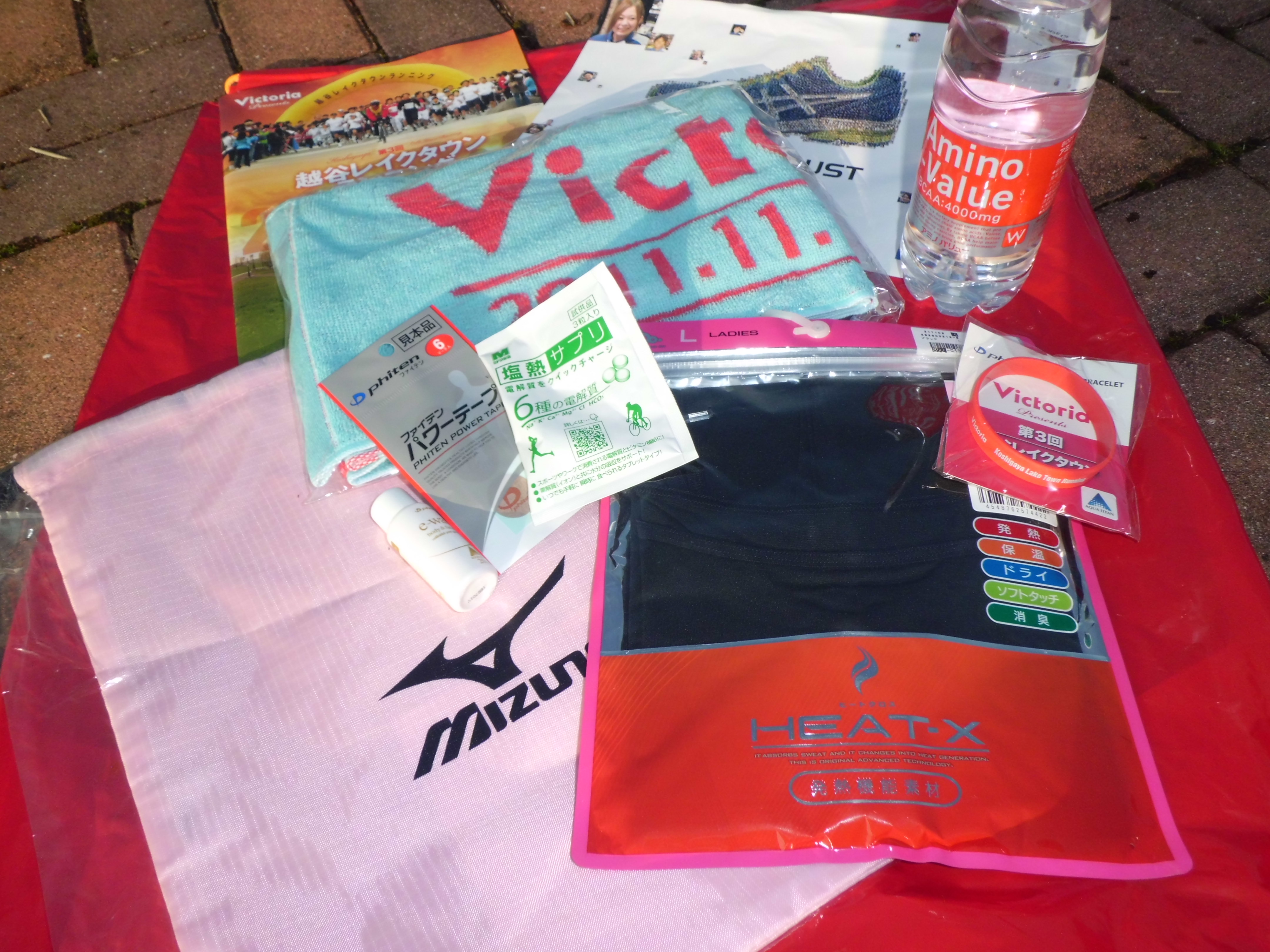 受付でゼッケンとVictoriaの赤いザック式ビニールバックをいただき、何だろう?と中身見たら(@_@;)