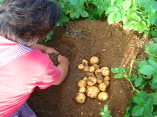農作物の収穫期を見極めるため、夕方に少し掘ってみました。