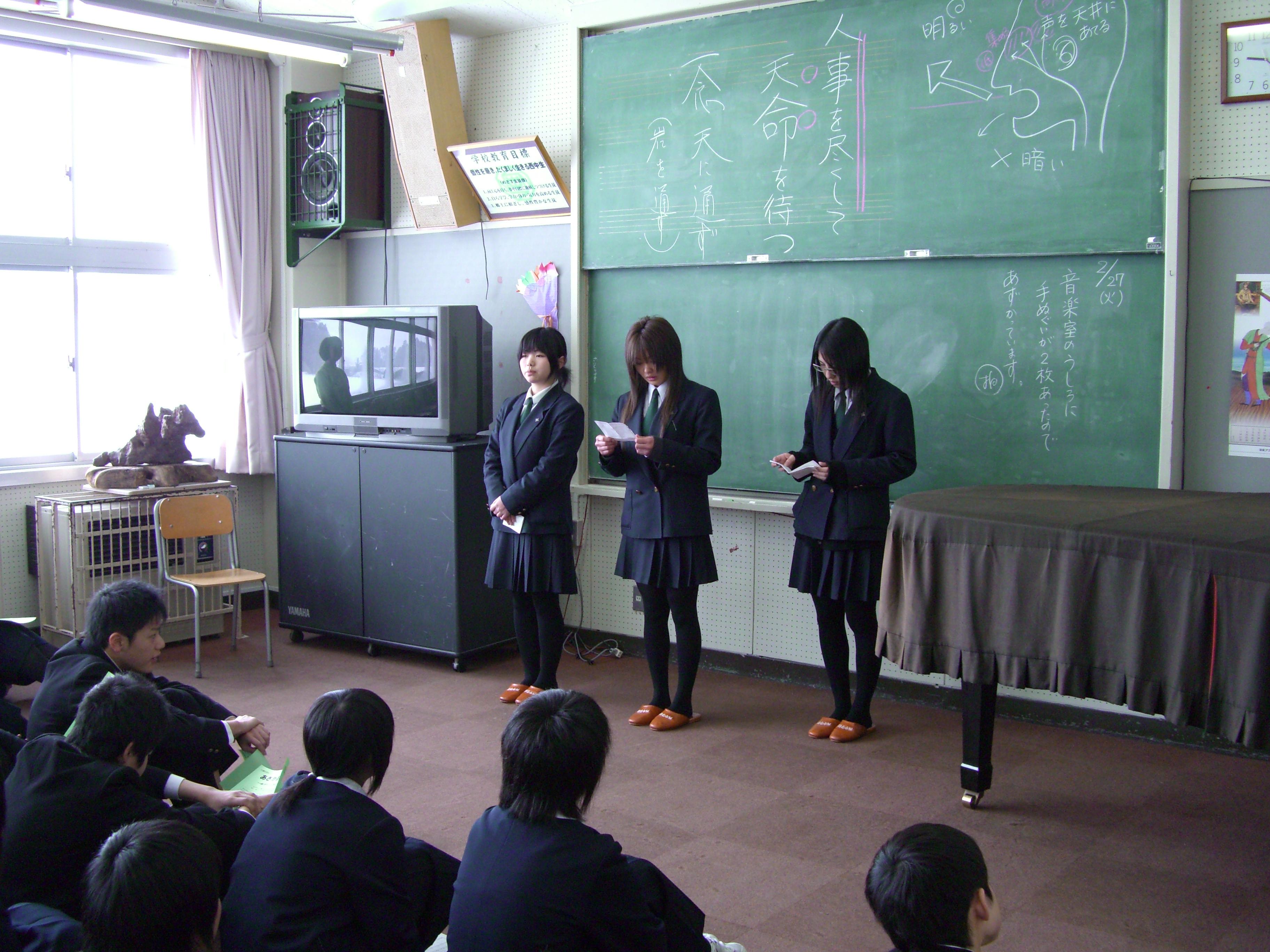 西中は音楽室で、東中は体育館でそれぞれ緊張の中、