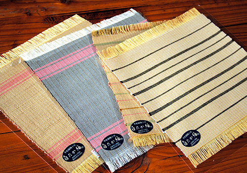 繭から糸を紡ぎ、経糸と緯糸を板に巻きつけて染め上げ、丹念に織り上げる昔からの伝統技法。本物の美しさが白鷹紬にある。