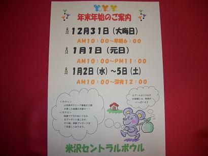 ▼米沢セントラルボウル★年末年始営業時間のお知らせ2007/12/28 22:33 (C) *米沢セントラルボウル*