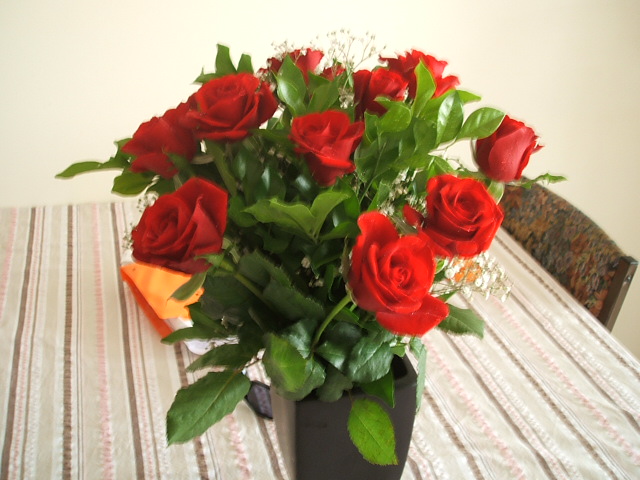 フィルが朝の休憩時間にケーキをバラを抱えて帰ってきてカンドーした!^^