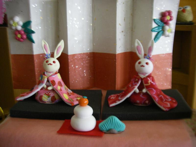 小国の新年は小国町立病院にお目見えした粘土細工の兎さん