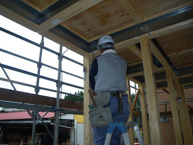軸組・小屋組みに続き内部の主要構造部の施工に入っています。