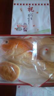母に雲平菓子の“8寸鯛の三ッ盛”を
