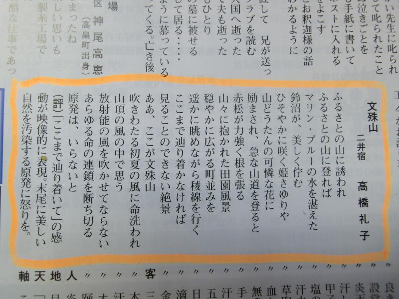 春の登山会に参加された方の詩が