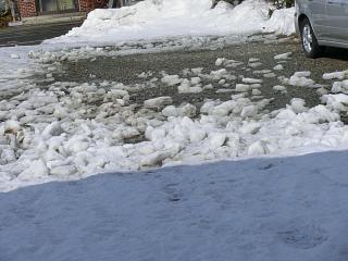 駐車場の氷もツルハシで砕いたので土が見え始めました。
