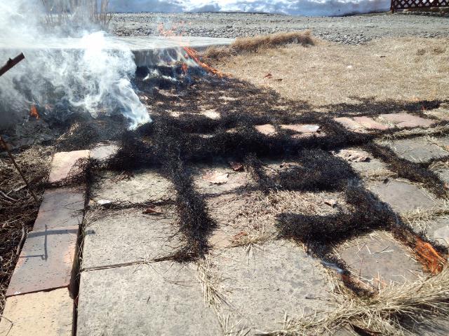 おこなおうとおもいまして芝を少し焼いてみました。