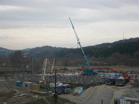 今日のコンクリート打設で校舎棟の基礎が完成します。