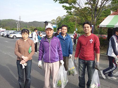 この事業は、年に一度、置賜地域の公共施設をこれからの観光シーズンに向けて清掃し、花の苗を植えて美しい環境づくりに協力するものです。