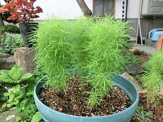 雨が降ったりやんだりの天気があすまで続く模様です。天気予報では8月から太陽が顔を出してくれるようです。スカッとした夏空が恋しいですね。この植物はほうき草と言っています。まだまだ葉が膨らみ 秋には真っ赤に色づき最後は切り取り外ほうきに作ります。