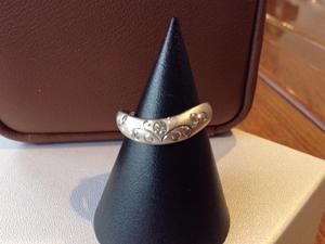 遊佐町からお越しのお客様の、だんな様から奥様への還暦のお祝いとして結婚指輪をリメイクさせていただきました。