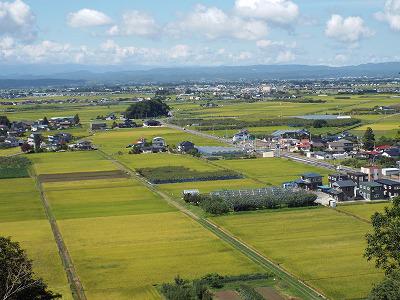 小さな山は 飯の森の天神山です。その奥は高畠高校方面です。