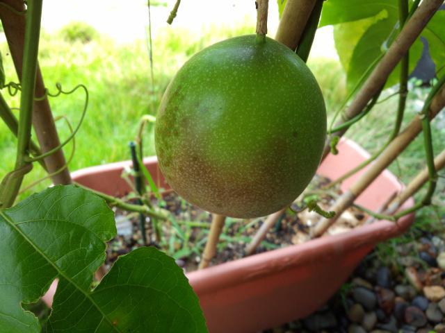 美蔵のグリーンカーテン・・・・・「パッションフルーツ」が茶色くなりかけております。茶色になれば完熟でつるから落ちるとか?楽しみです!!