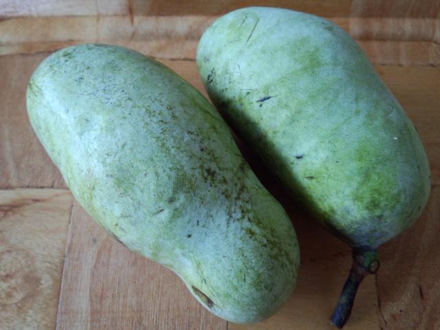 今日、収穫した“ぽぽー”は・・・・幻のフルーツと呼ばれております。バンレイシ科アシミナ属 落葉性高木原産 北アメリカ東部明治30年頃珍菓として入ってきたそうです。大きさは10〜15cmくらいあり、あけびの形をした果実甘みが強く独特の香りがあり果肉はバターのようにトロッとして甘く香が強い森のカスタードクリームと呼ばれているそうです(^。^)v