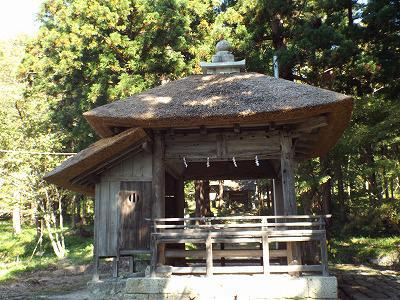 朝から雨模様でした。写真は安久津八幡神社の舞楽殿です。5月2日と9月15日に舞が披露されます。このたび かやぶき屋根が入れ替えられました。