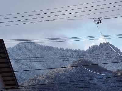 雪が積もっていました。初めての雪だけあってすぐに溶け始めましたが陽が差したものの 気温は12月並みの寒さでした。文殊山も薄化粧の姿を見せました。
