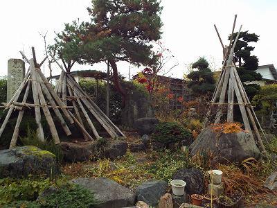 いつもは庭師に頼んでいましたが今年は せがれと家族でやることにしました。庭木の雪囲い一年生です。まず 4本の木で大きな支柱を立てるのが 一苦労です。その後抑えの横木を設置しますが ここまでが複数の人数でないとできません24日は時間切れで写真のような状態までしかできませんでした。これからは ぼちぼち 板を立てて囲んでいきます。本日の高畠は寒い朝です。曇りで夕方雨になるようです。