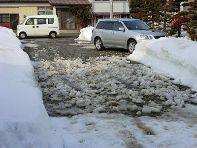 自宅前の氷を割りました。春を感じさせる暖かさです。どんどん雪も解けていきます。暖冬はいつまで続くのか