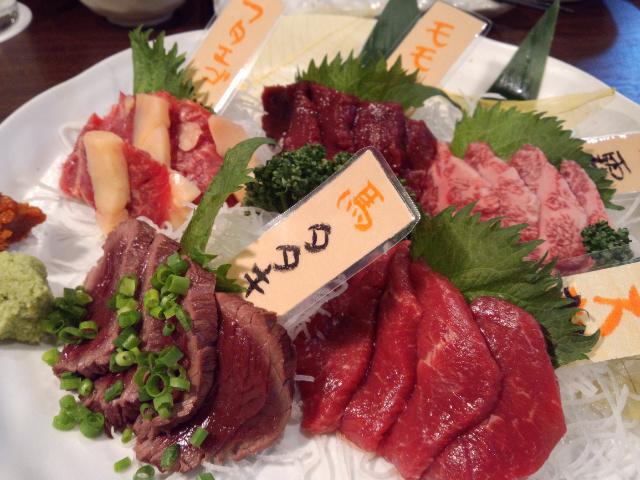 私が生まれて、人生2度目に食べたものは・・・・・?「馬肉」です。東置賜に住んでいる私は、馬肉に縁がなく食べたことがあまりありません゚(゚´Д`゚)゚西置賜の方はよく食べるのですが・・・・文化の違いですかね???昨日の夜は米沢で馬肉専門店でお食事会(送別会)がありました。かなりヾ(@⌒ー⌒@)ノで行ってきました。馬刺しとか馬肉の焼肉?とかいろいろ馬料理があり、美味しかったです!!