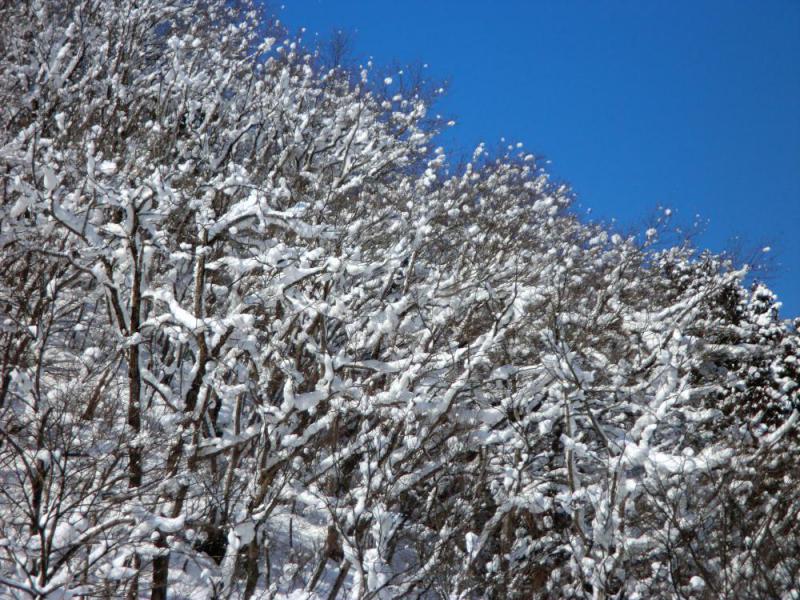 寒波後の快晴です。山々が雪によって不思議な風景を醸し出しています。