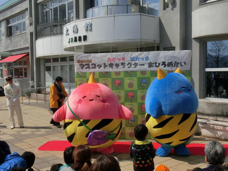 4月12日(土)高畠町のマスコットキャラクターがついに初披露! 4月12日(土)に高畠町のマスコットキャラクター「たかっき」「はたっき」が高畠町太陽館(JR高畠駅)にやってきました!浜田広介の童話「泣いた赤おに」をモチーフにした赤おにと青おにのキャラクターです♪当日は、「まほろばの緑道安全祈願祭」や「やまがた花回廊キャンペーン」のオープニングイベントも開催され、「たかっき」「はたっき」も大活躍でした。これからも応援よろしくお願いします。