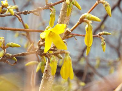 レンギョウが花開くました。昨年12月、暖冬で花が咲きましたがようやく春本番と気づいてくれたようです。今日の高畠は午前中はいい天気でしたが午後から曇り時々雨模様です。夕方から冷え込んで来る模様です。