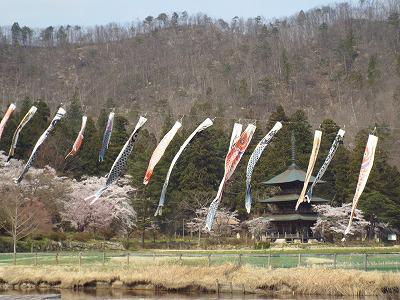 高畠の象徴とも言うべき安久津八幡様の三重塔付近は春祭りの準備が整いました。本日の高畠は曇りのち晴れです。