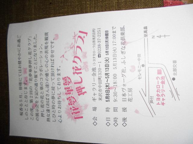 いつも、お世話になっている知り合いの方が今日から押し花の展示会を開催しております。場所はトヨタカローラ山形米沢店さんの「ギャラリー金池店」です。期間は5/8〜5/13まで時間 9:30〜18:00までぜひ、お近くの方は見にいってけろ〜