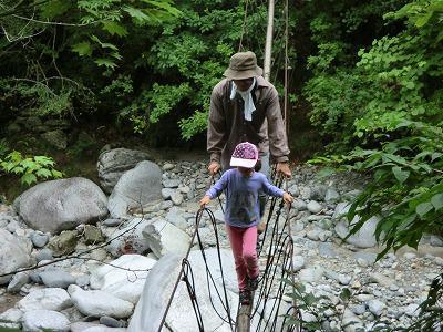 このブログもお盆休みをしました。今日から活動です。お盆は浜松の娘家族5人と山形の息子家族2人が加わりにぎやかな生活でした。メインイベントは有吉とまつこのイカリシントウの三大恐怖のつり橋ナンバーワンとして紹介された小国の角楢橋への案内でした。小学校一年の女の子と3年5年の男子とその親を連れて行きました。わたりるのか心配でしたが無事帰還できました。最もひっびり腰だったのは子供のままでした。夏休みが終わったら学校で自慢すると言って帰った孫たちまた来てね