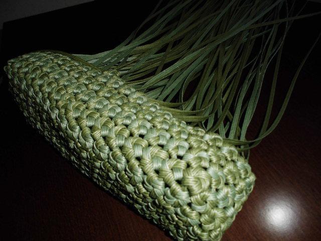 ここ最近、マスターした「花結び編み」で地味な???「バック」を作ってみました。いゃ〜時間がかなりかかりまして・・・(−。−);次があるかな???さすがに1段編むのに1時間かかりやっと慣れて30分くらいまで時間短縮できましたが・・・・難しい(−。−);やれやれ