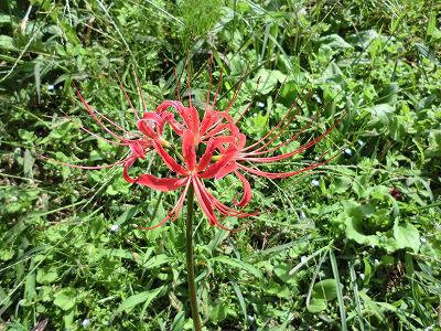 いつものウォーキングコースで発見一輪だけですが どこかから種が飛んできて咲いたのでしょうかお彼岸までまだ2週間ですが