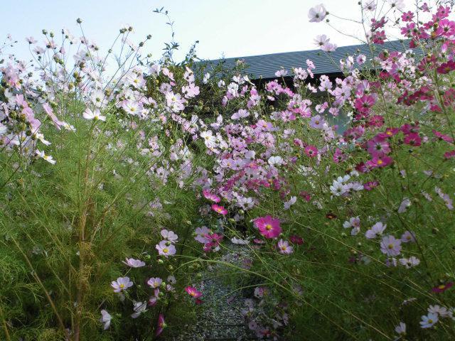 今年のコスモスは丈がとにかく高く・・・・・(−。−);美蔵の庭は「コスモス」に埋もれております。只今、アーチのところがトンネル状態なのですが、コスモスの倒れてご不便をおかけします。どうしても、コスモスのトンネルをくぐりたい方はかきわけてお通りくださいませ(^。^)v