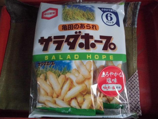 今日は、朝から雨模様(−。−);少し雨足が強く感じられますが・・・高畠町は、朝から大雨洪水注意報がでております。このまま、たいしたことなく台風がすぎて行ってほしいです。 さて、先日 新潟に行きましてど〜しても食べたかった「サラダホープ」を買ってきました。久しぶりに食べると超うまいです!!山形で言う「オランダせんべい」みたいな感覚で新潟の方は食べているのだとか???そういえば(−。−);「オランダせんべい」最近見ないよな???気がしますが・・・・・・気のせいかな???